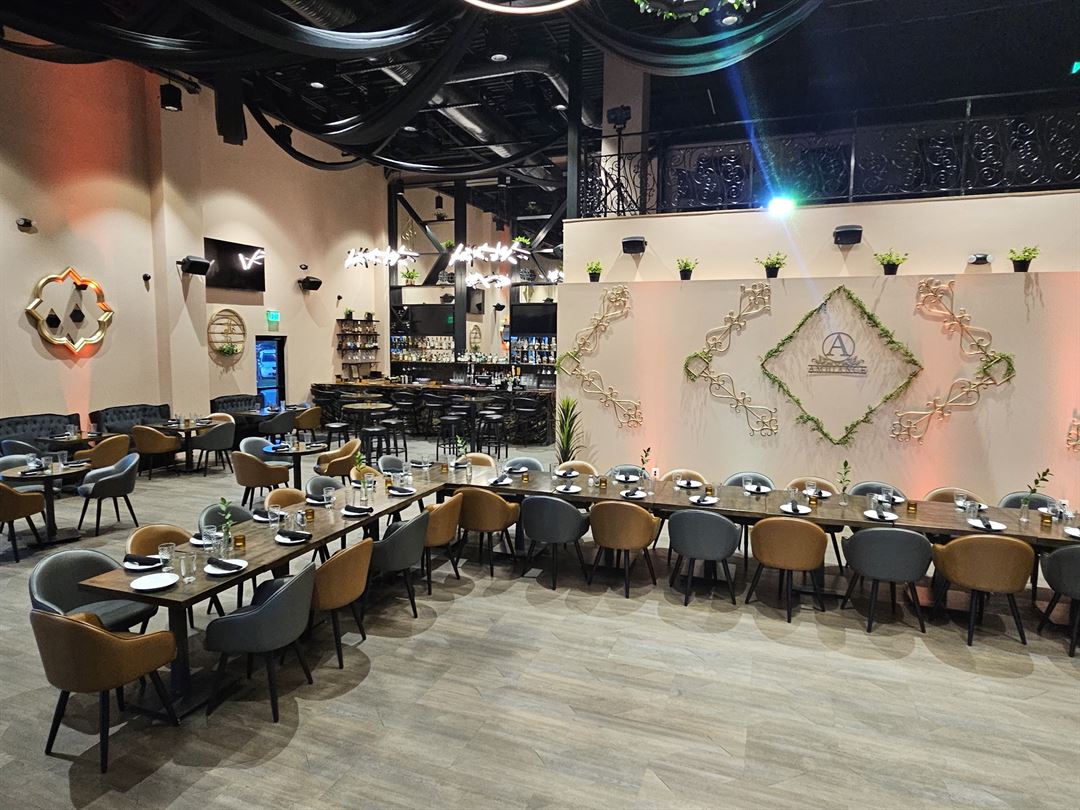 Welcome to our fusion restaurant, where European and Mediterranean cuisines come together in a delightful blend of flavors. Our elegant and inviting venue is perfect for hosting special occasions, from intimate gatherings to grand celebrations, creating unforgettable experiences for you and your guests. Venue Types: – Banquet/Event Hall – Restaurant/Bar/Pub Features: – Accommodates up to 250 guests Amenities: – Full bar and lounge – Fully equipped kitchen – Complimentary Wi-Fi Indulge in a unique fusion dining experience that combines the best of both worlds at our versatile and stylish venue.